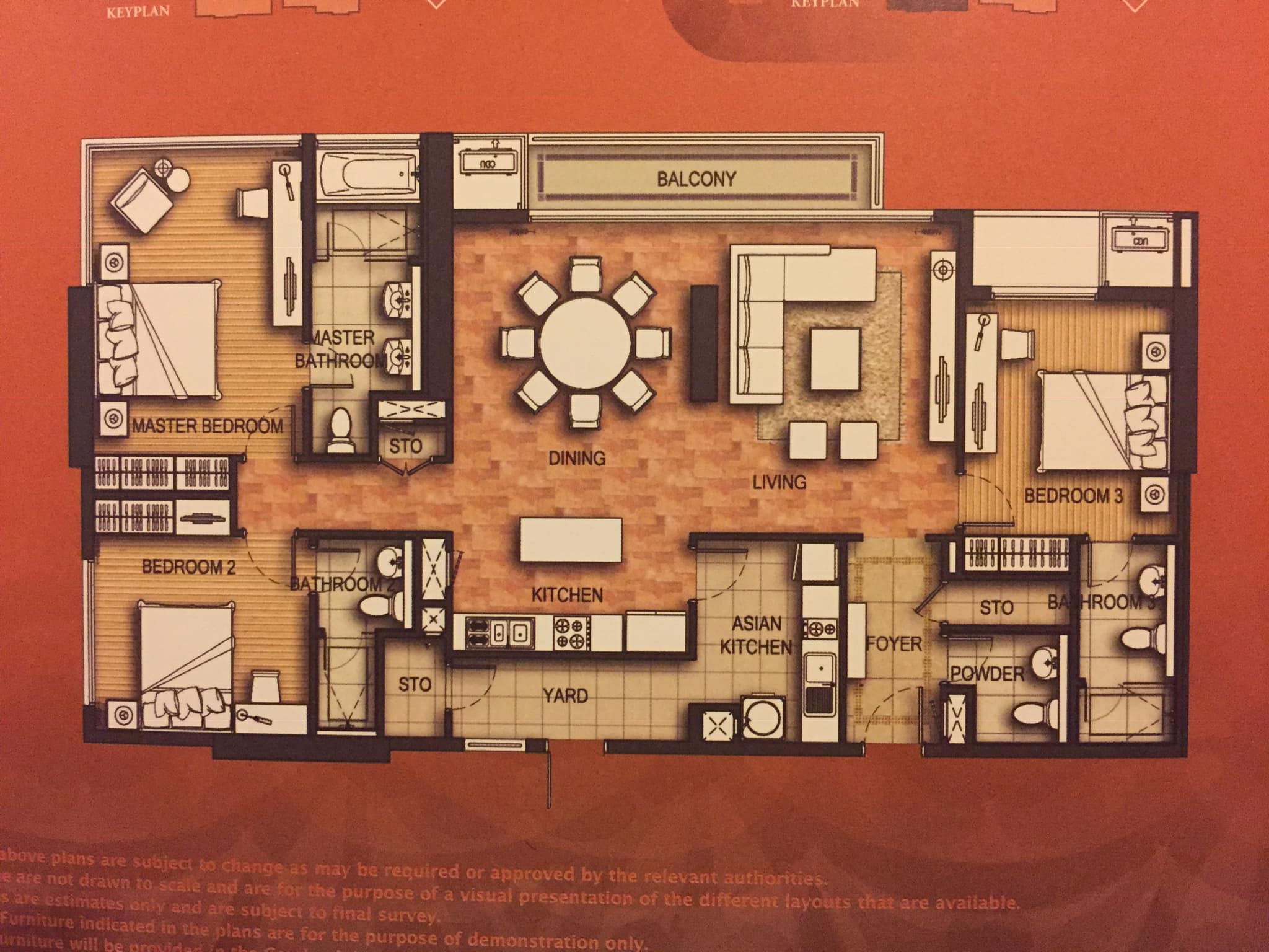 151 sqm. 3 bedrooms, 3 bathrooms + 1 WC, 2 kitchens, 1 store room.